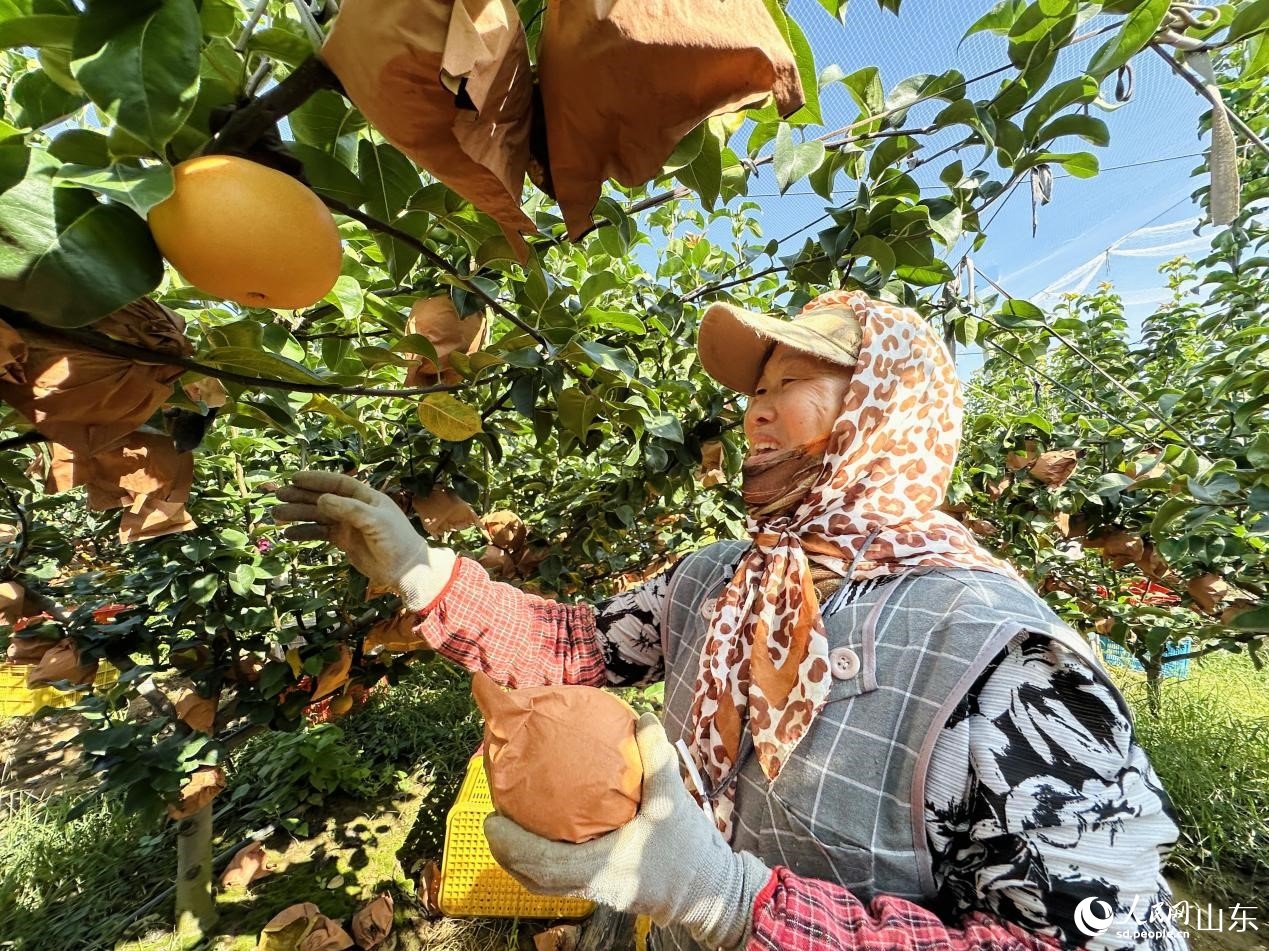 一托、一转、一拧,一颗硕大的秋月梨被利索地“下树”,轻柔地放进身边的果箱。